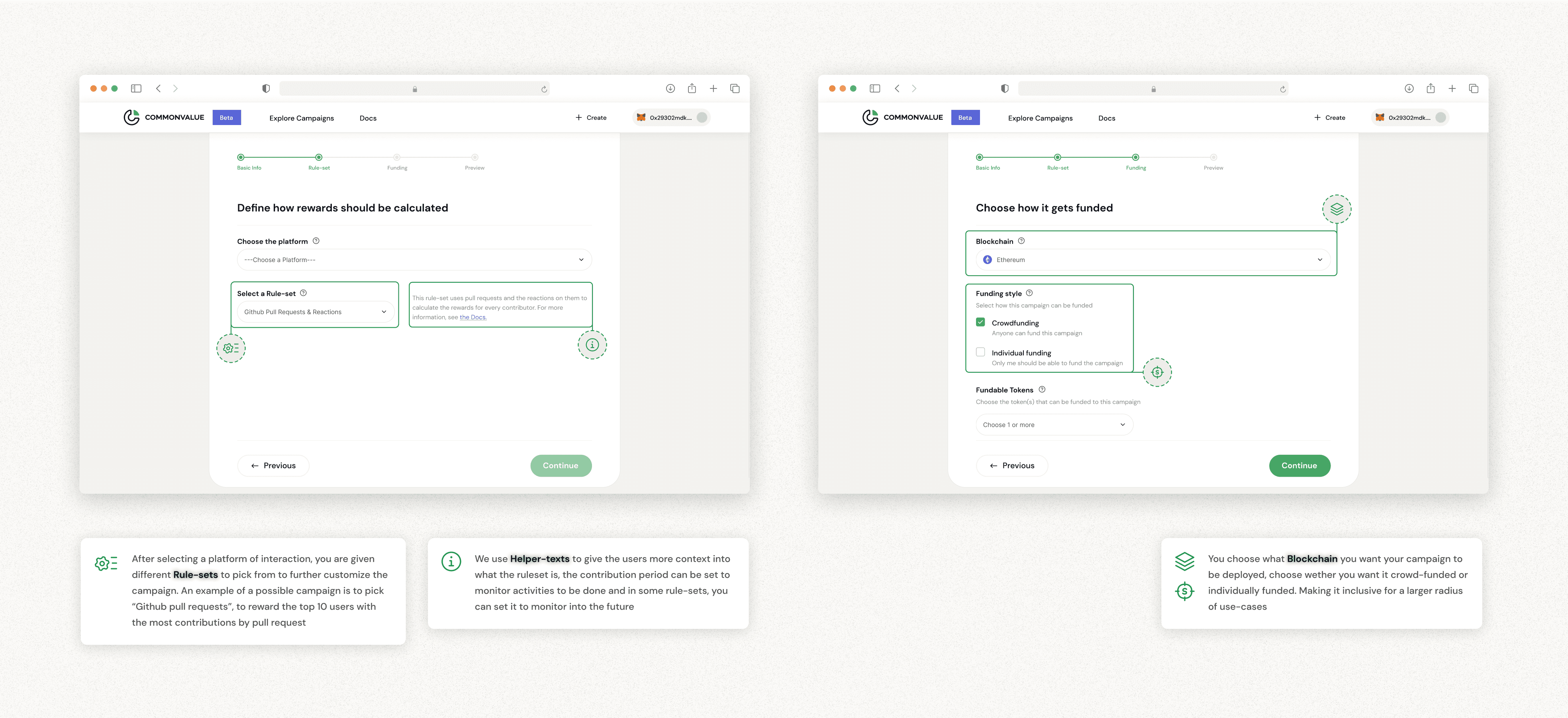 CommonValue enables communities to generate flexible reward mechanisms. based on both on-chain and off-chain data. Anyone can open a Campaign and choose a Strategy, for which the reward distribution will be based.