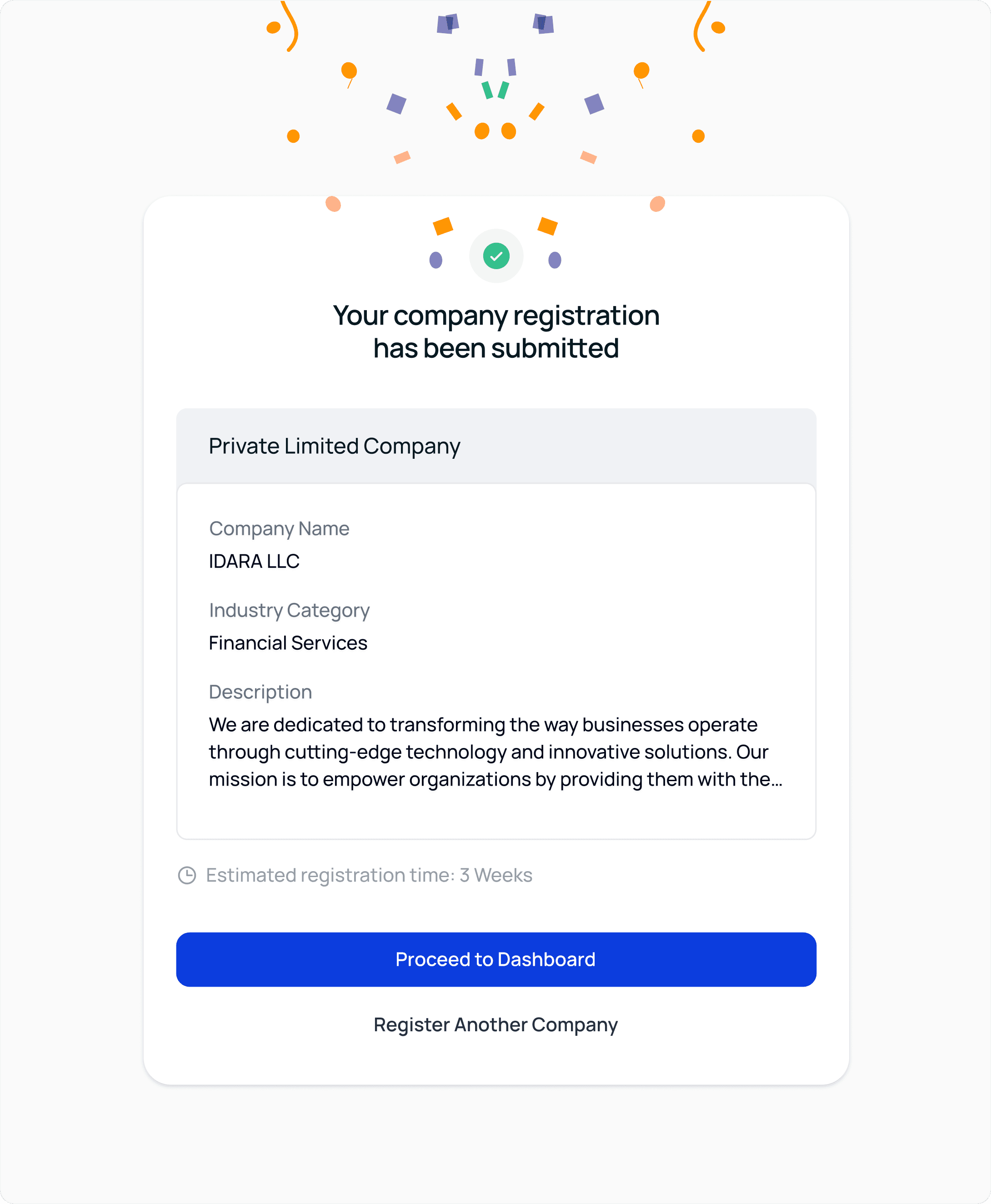 Reduced business registration time from weeks to under 10 days.