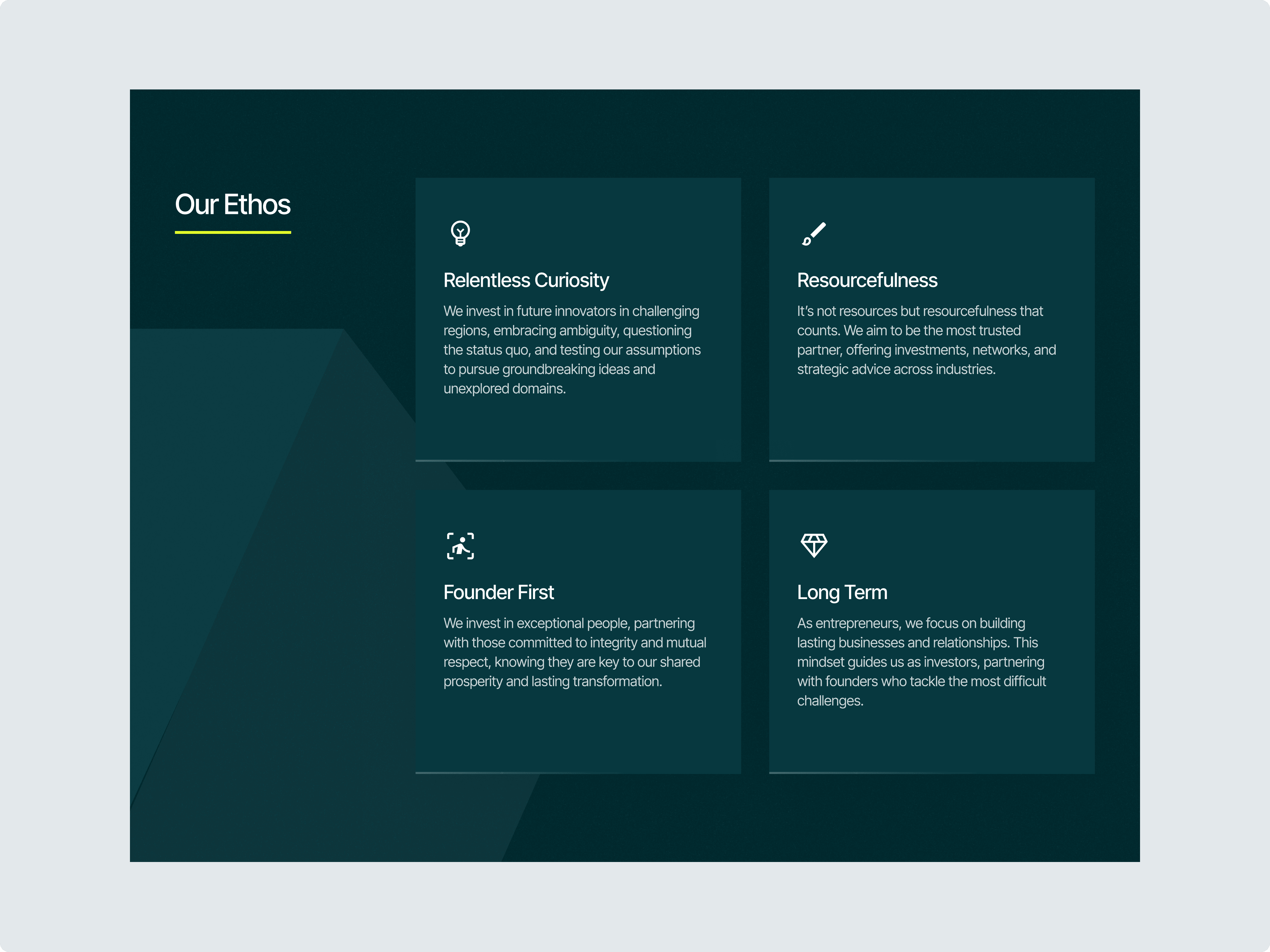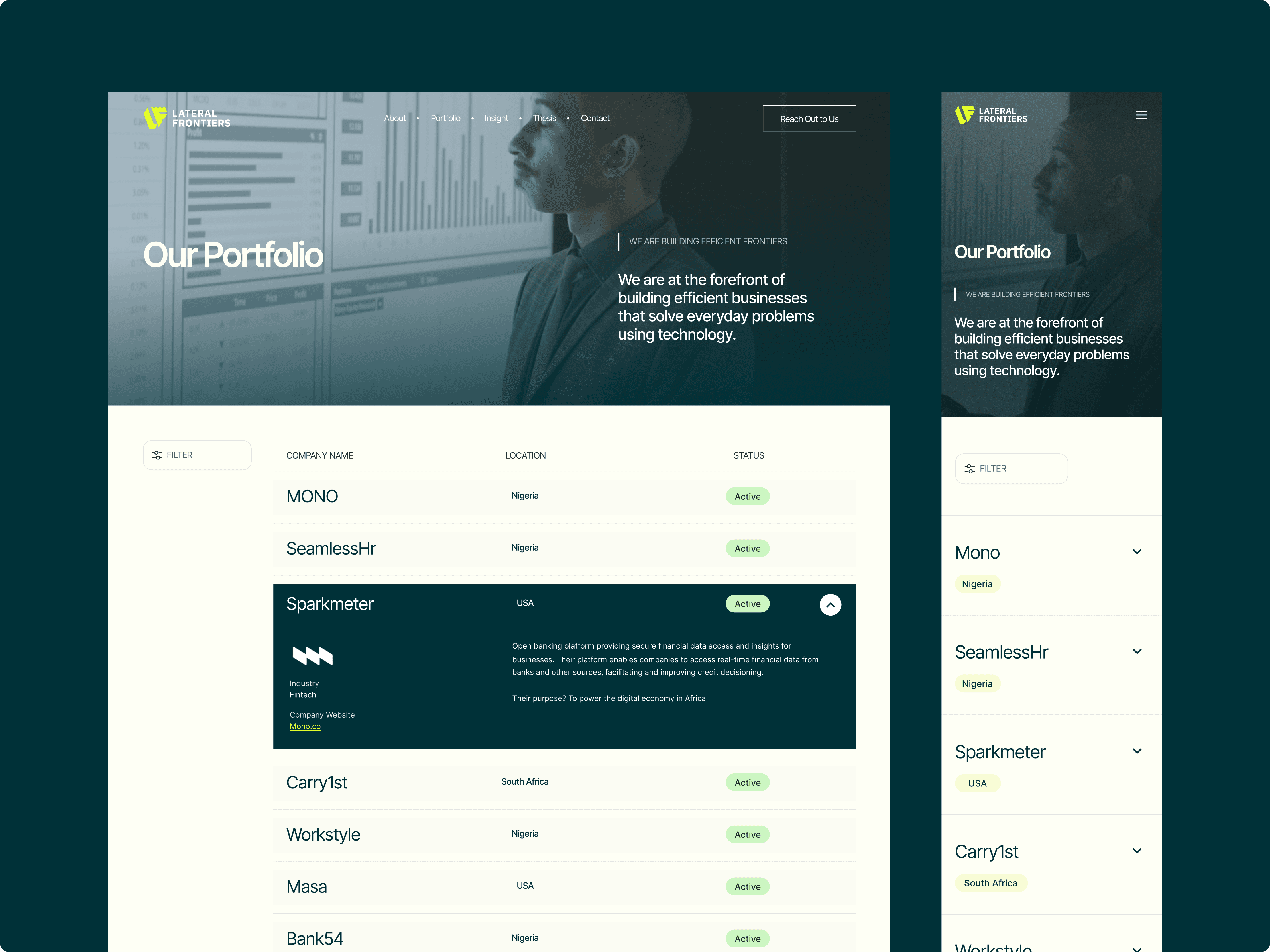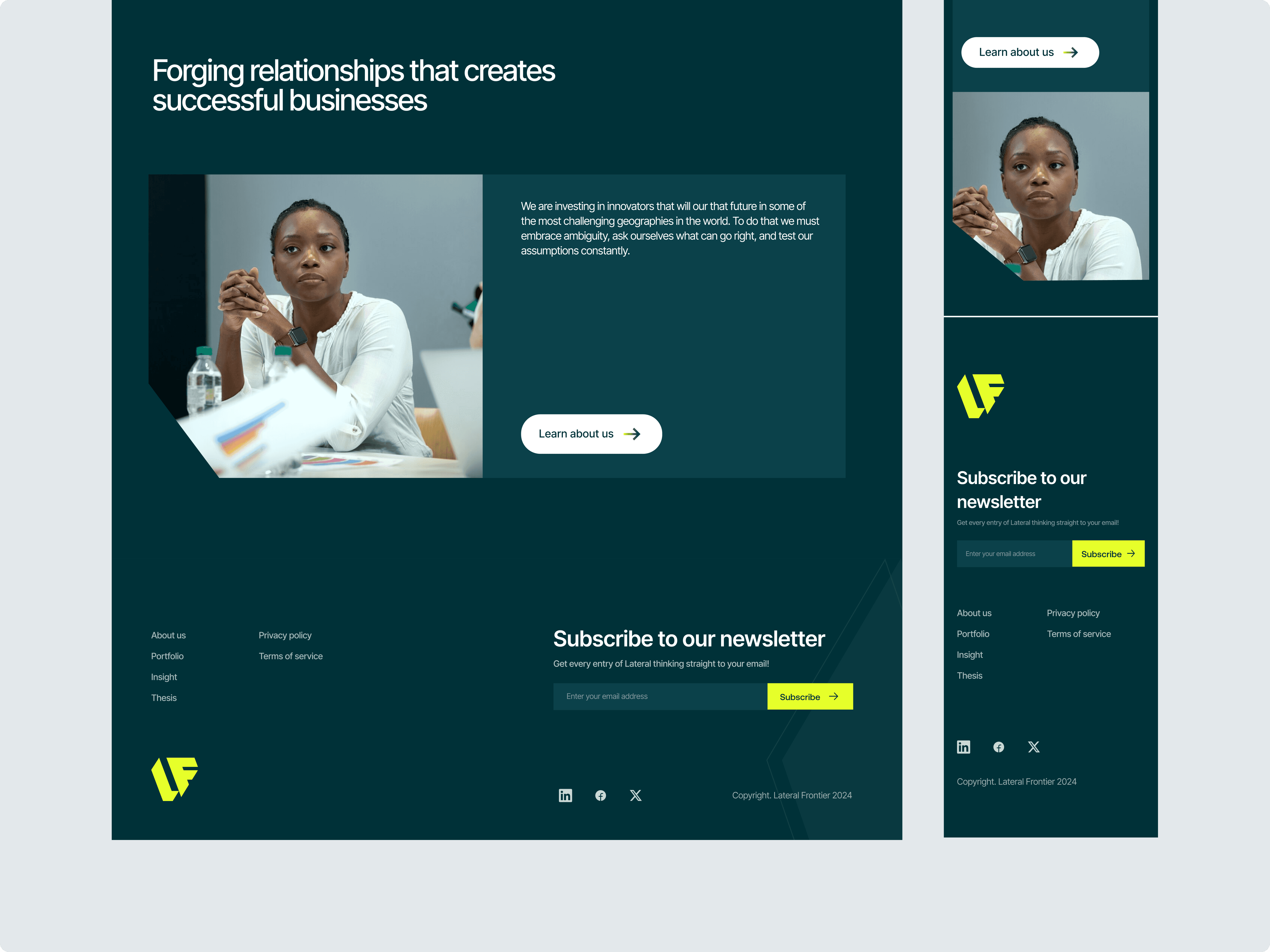 We designed the site to guide visitors through Lateral’s philosophy: relentless curiosity, founder-first partnerships, and long-term thinking.