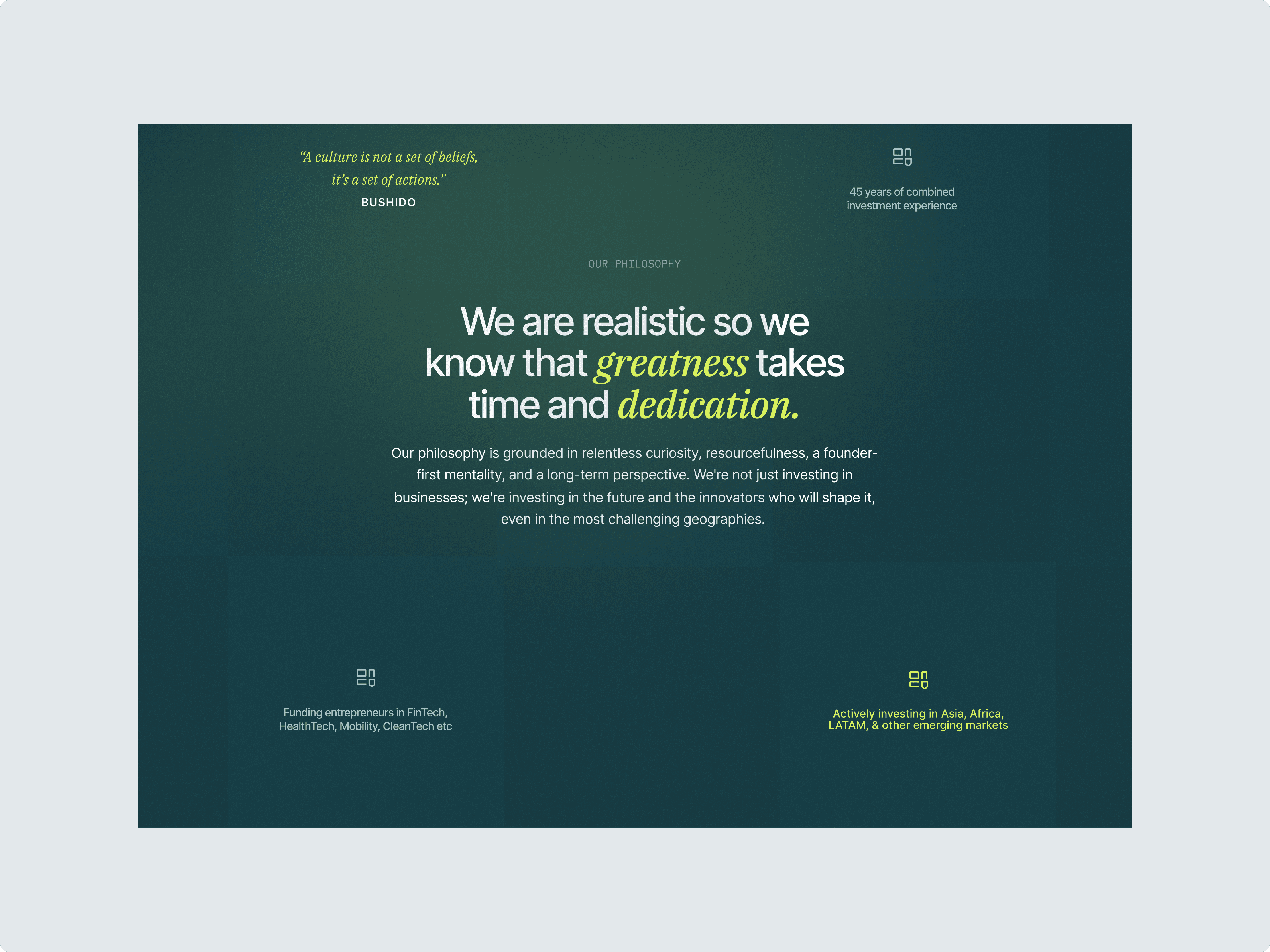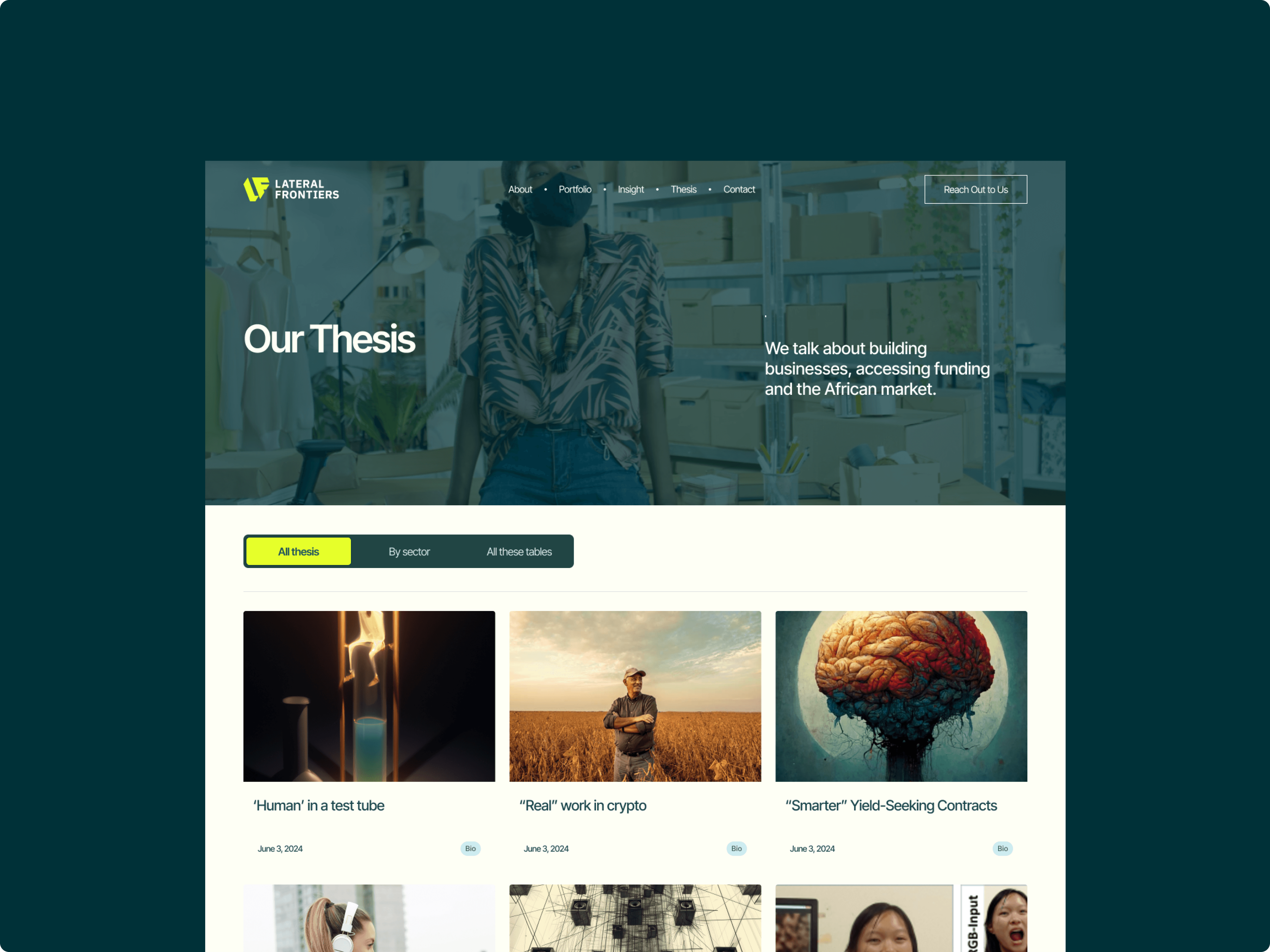 Turned the site into a storytelling platform, showcasing thesis, portfolio, and founder-first ethos.