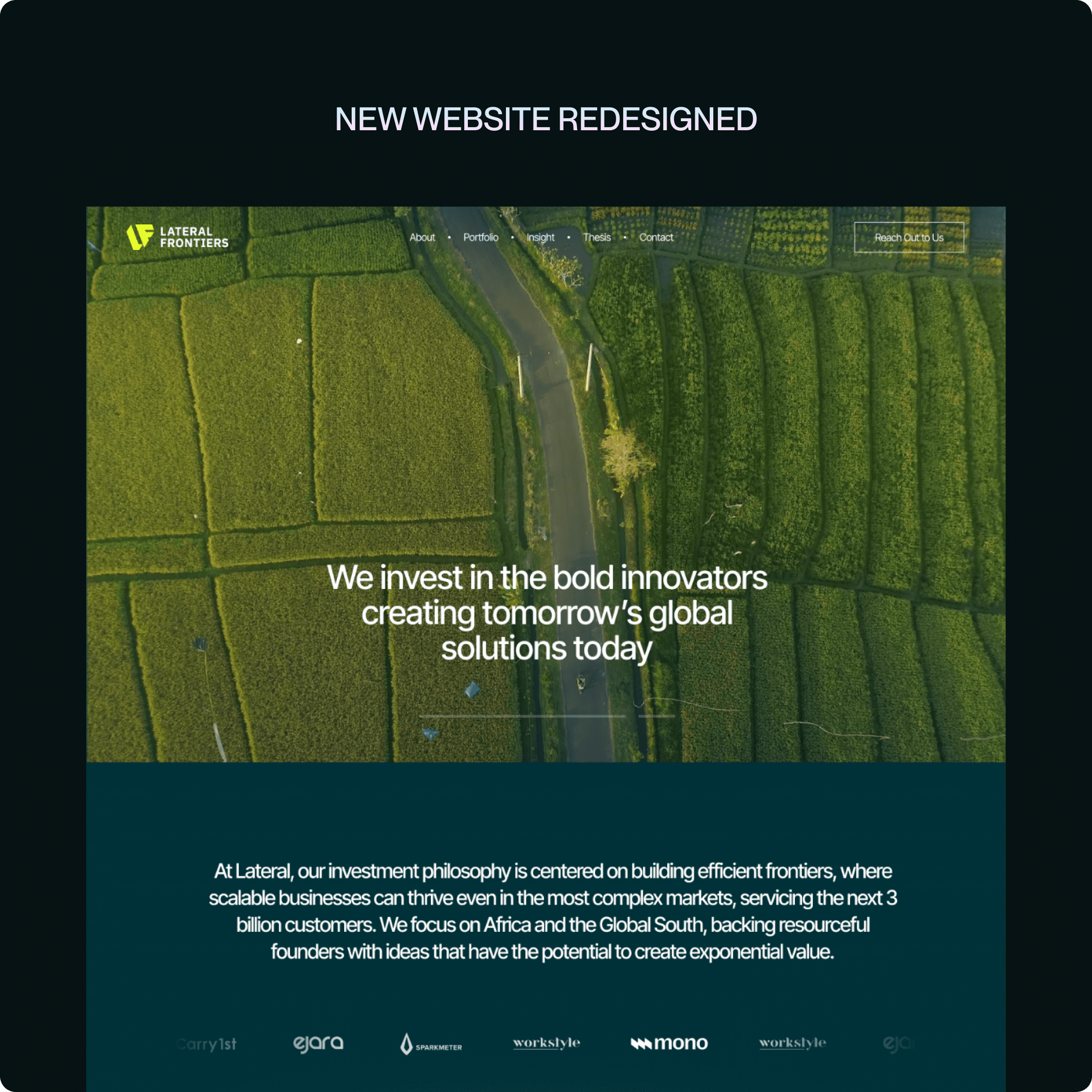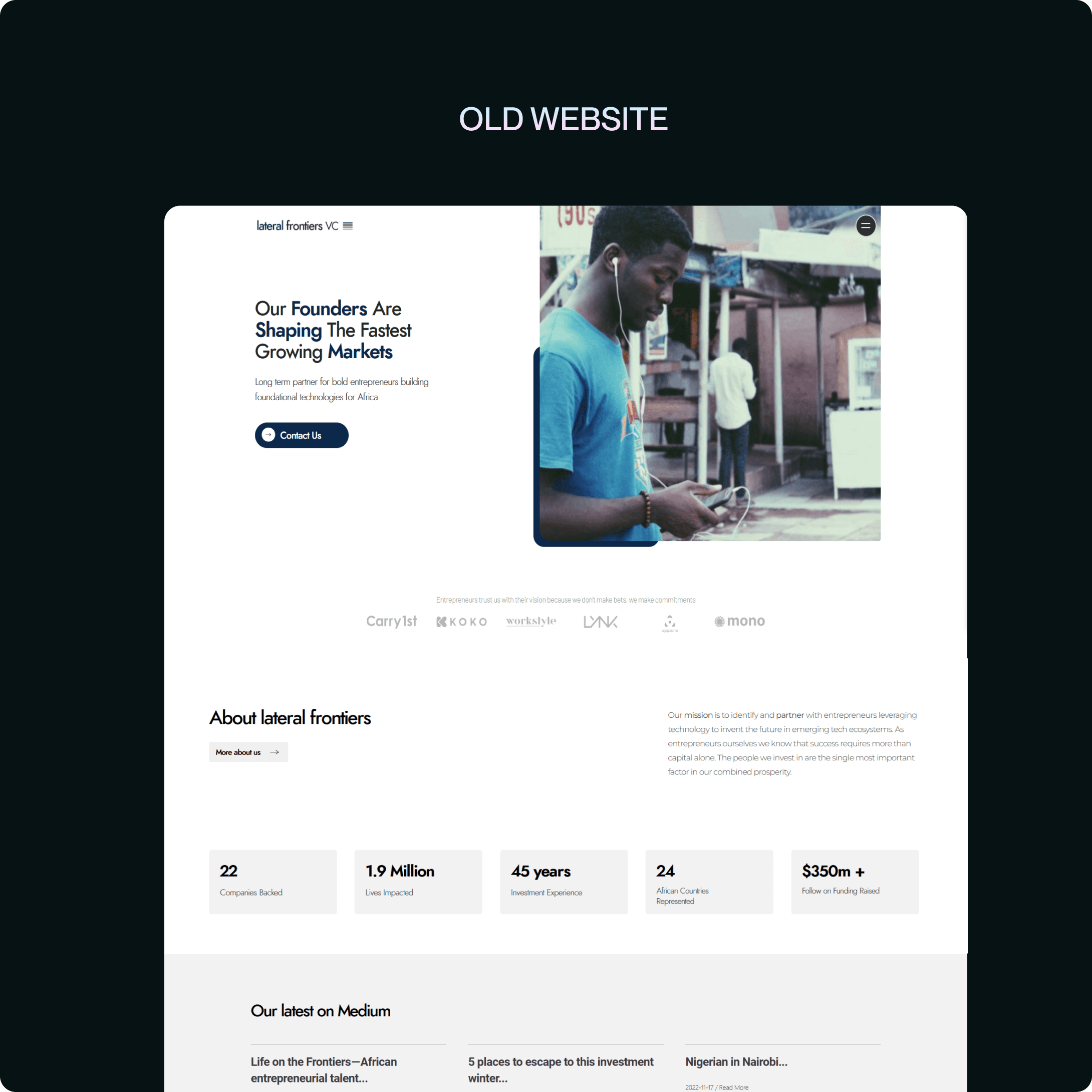 The previous website was functional but limited. It lacked the immersive storytelling and design maturity to reflect Lateral’s mission or portfolio scale. Specific challenges included: