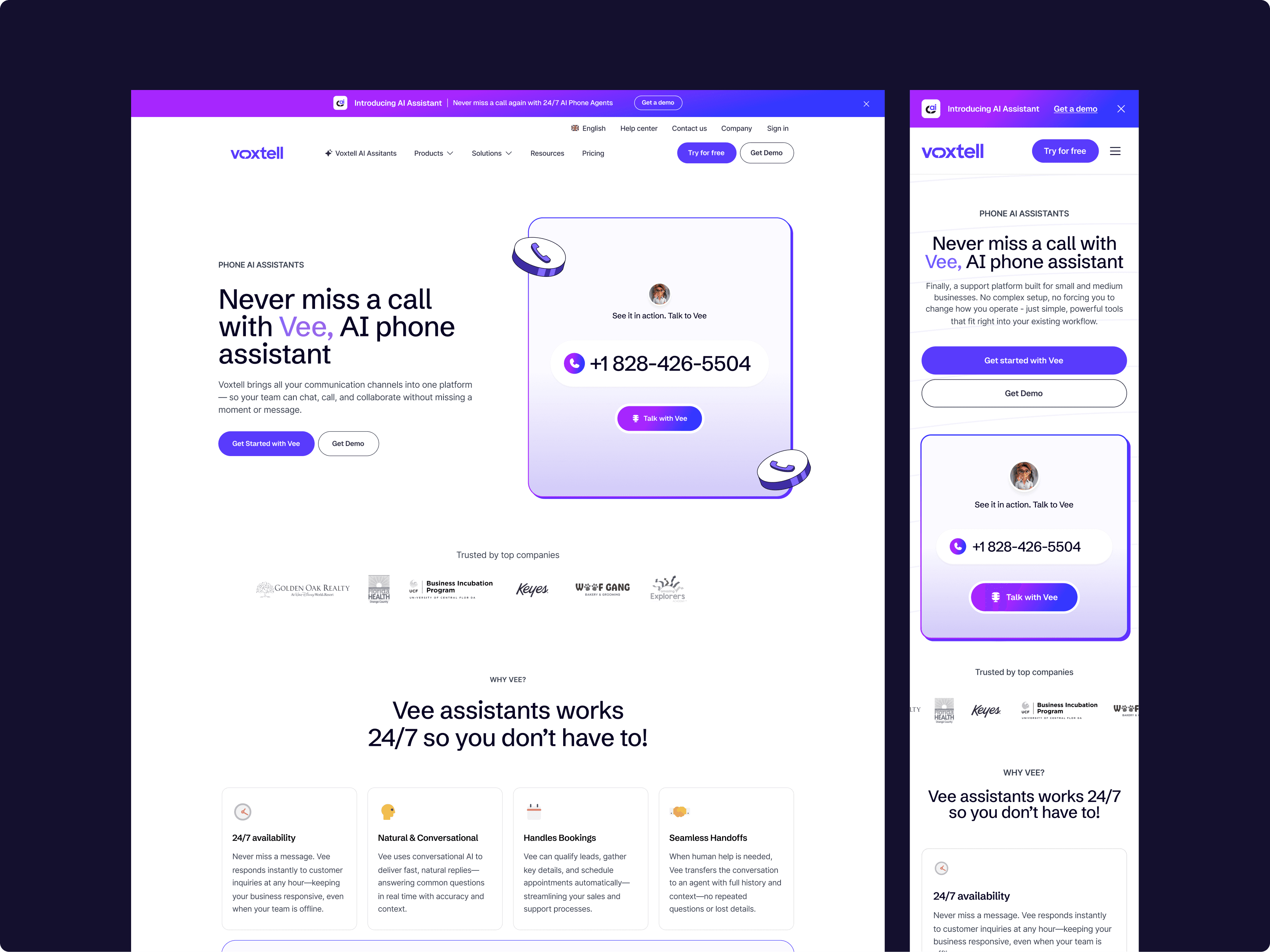 Responsive Design → Fully optimized for mobile, desktop, and tablet to match how businesses actually access Voxtell’s tools.