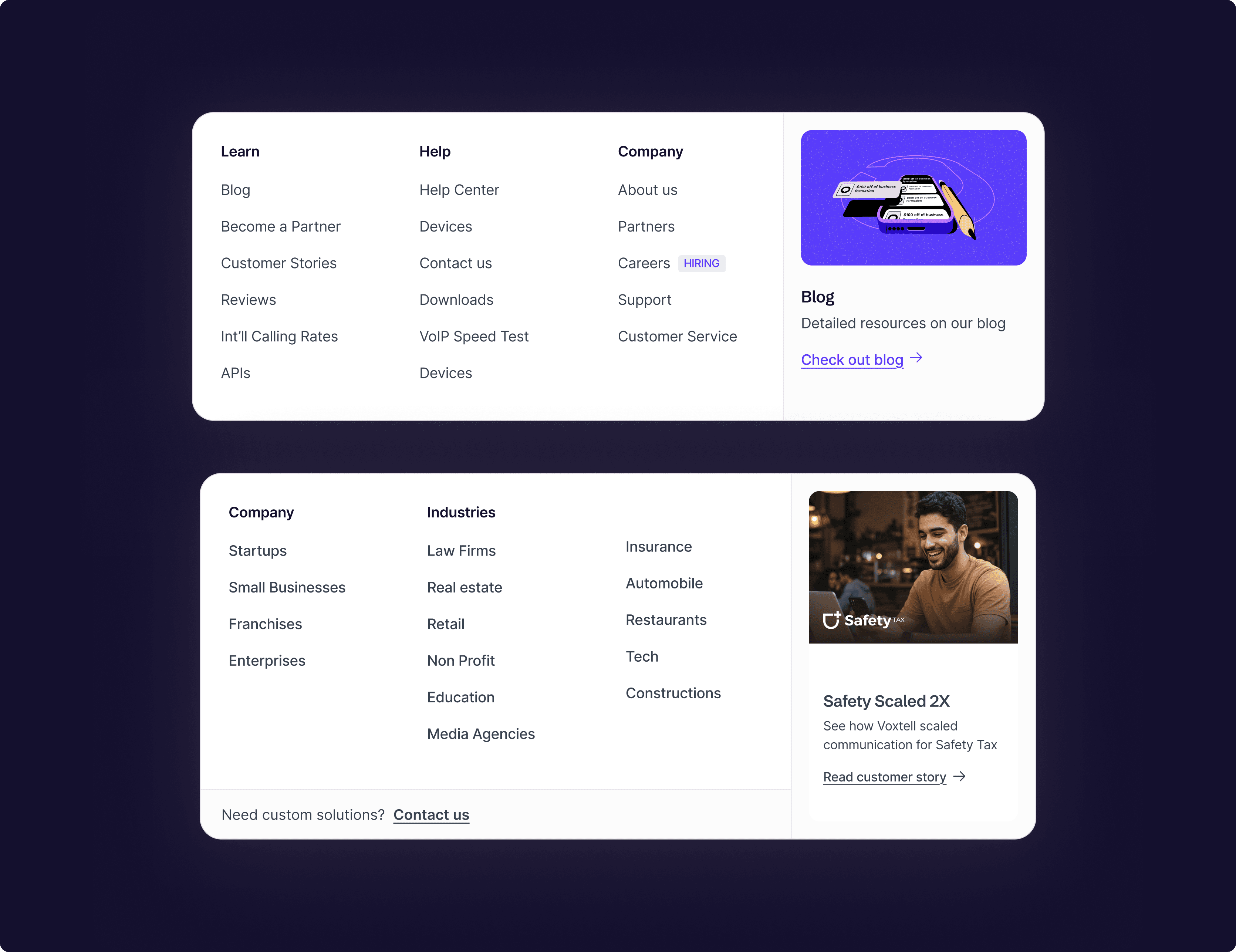 CMS Implementation → Flexible CMS for Voxtell’s team to manage landing pages, blog posts, and product updates easily.