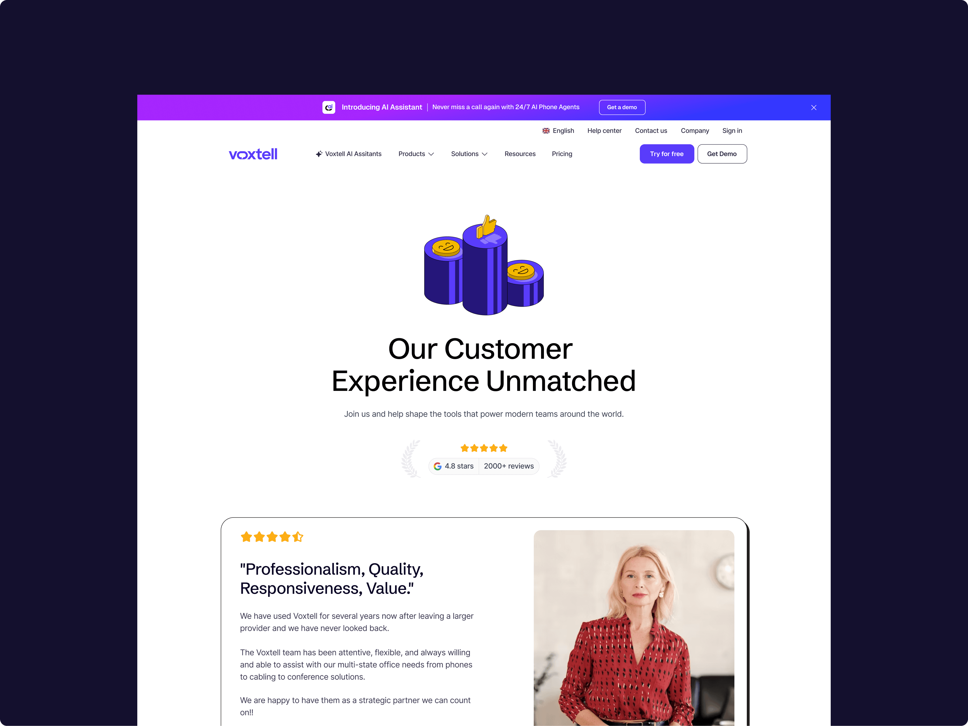 We reimagined the Voxtell website as a growth engine and brand showcase: