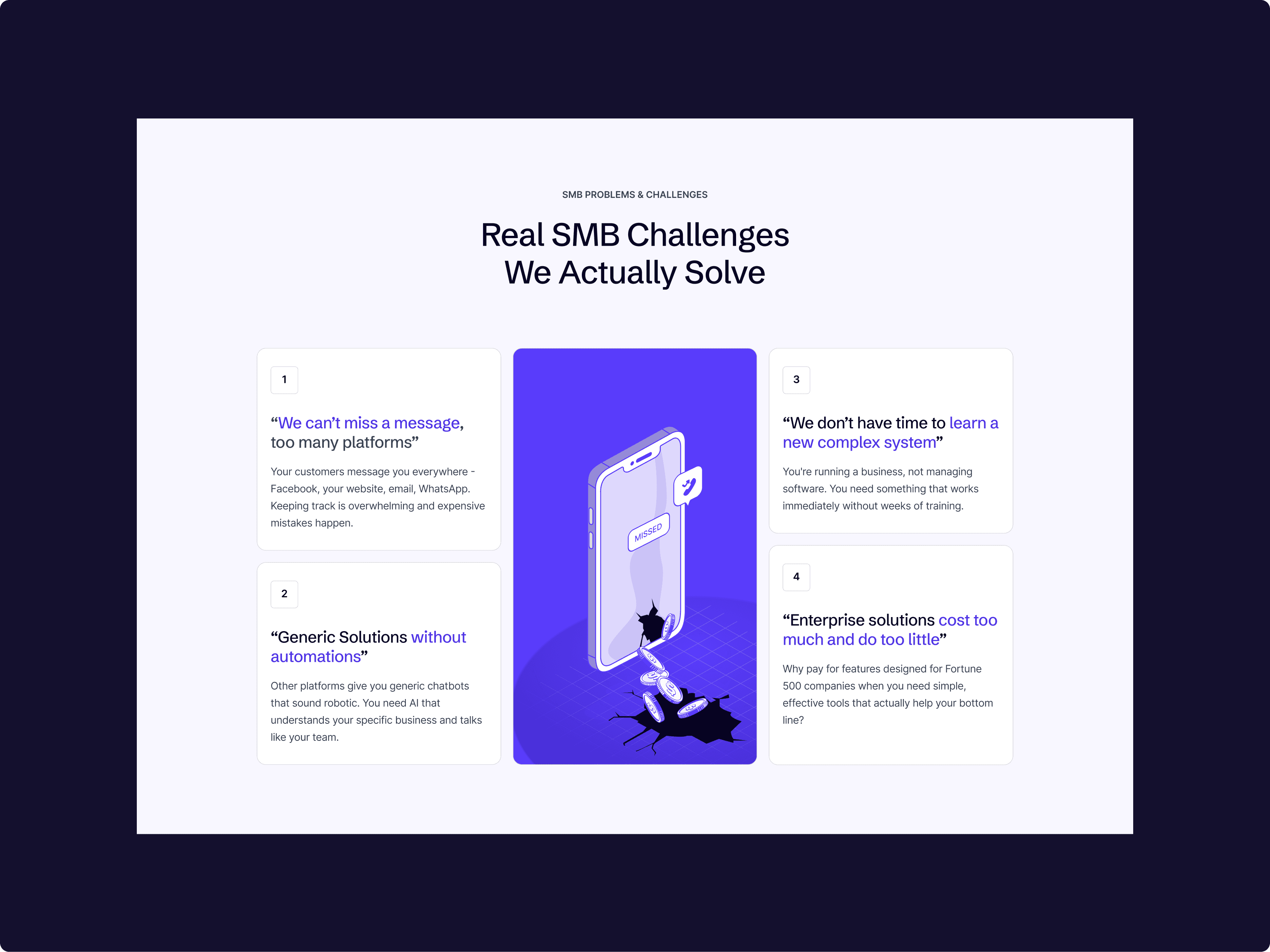 Customer Stories & Case Studies to highlight measurable client results (e.g., 30% fewer missed leads, 35% more appointments booked).